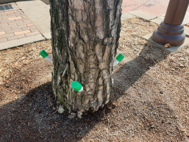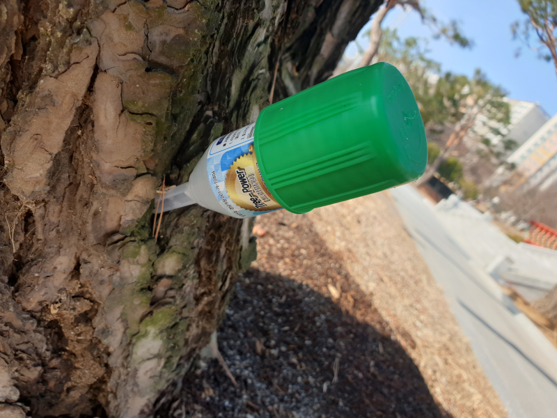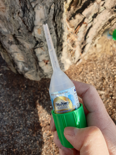 소나무에는 미량요소가 포함된 영양제 성분의 수간주사제를 투입하여