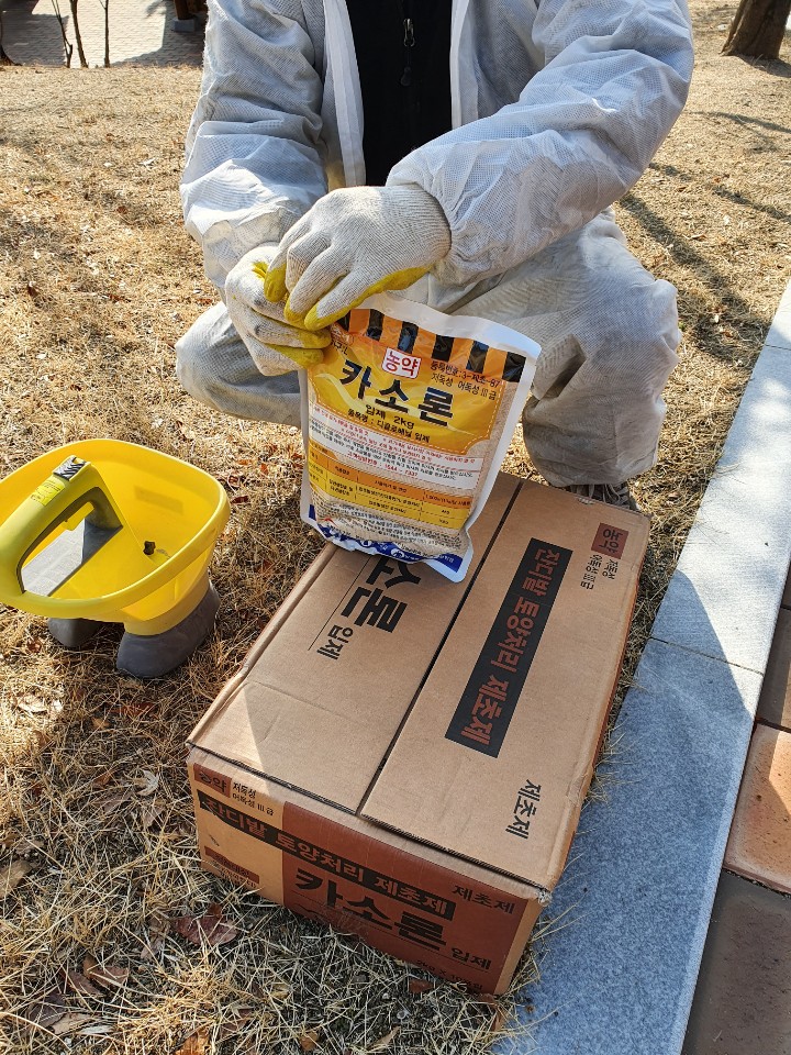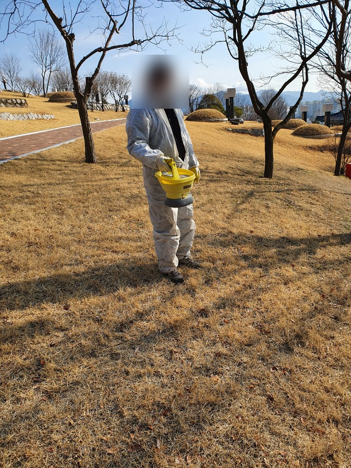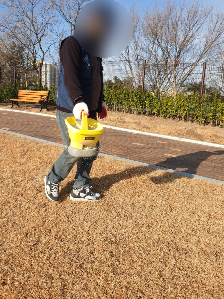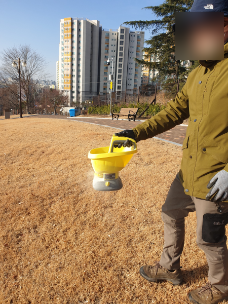 공원에 크게 조성된 잔디밭에는 - 잡초가 올라오기 전, 미리 제초제를