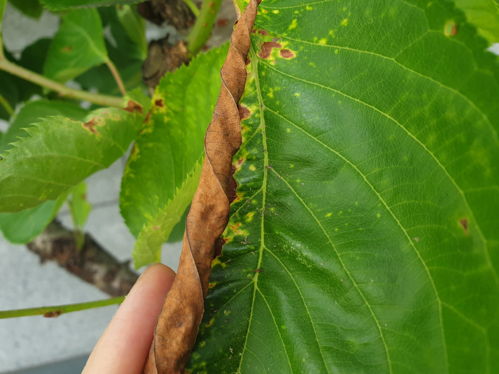 잎이 돌돌 말리고 조기에 떨어지는 피해가 관찰되고 있었습니다.