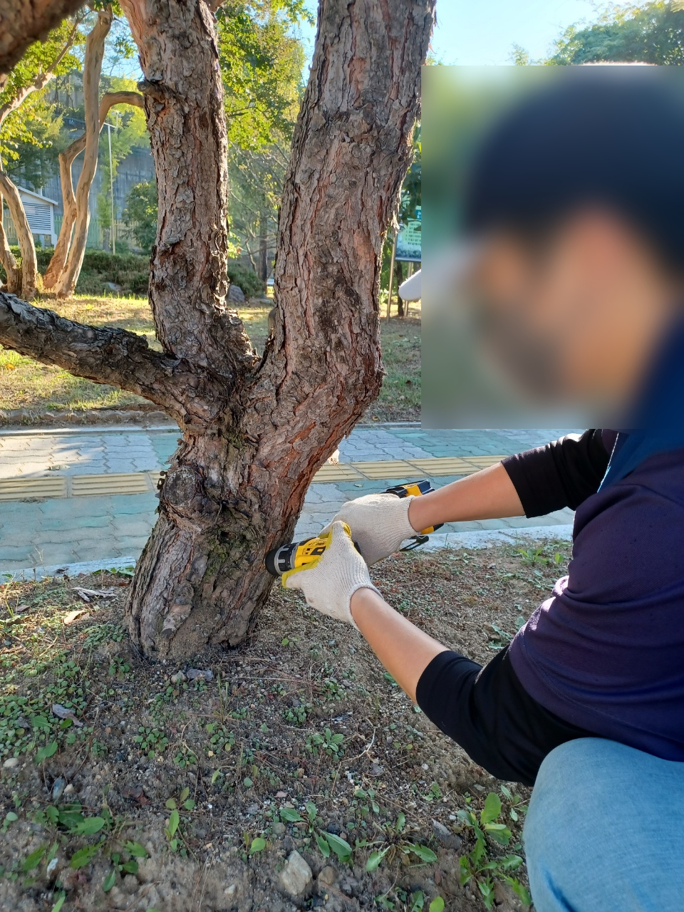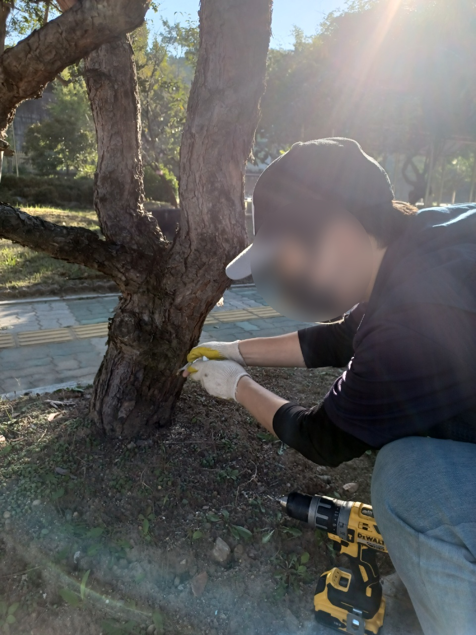 가장 먼저 진행한 작업은, 수목병해충 방제작업 입니다.