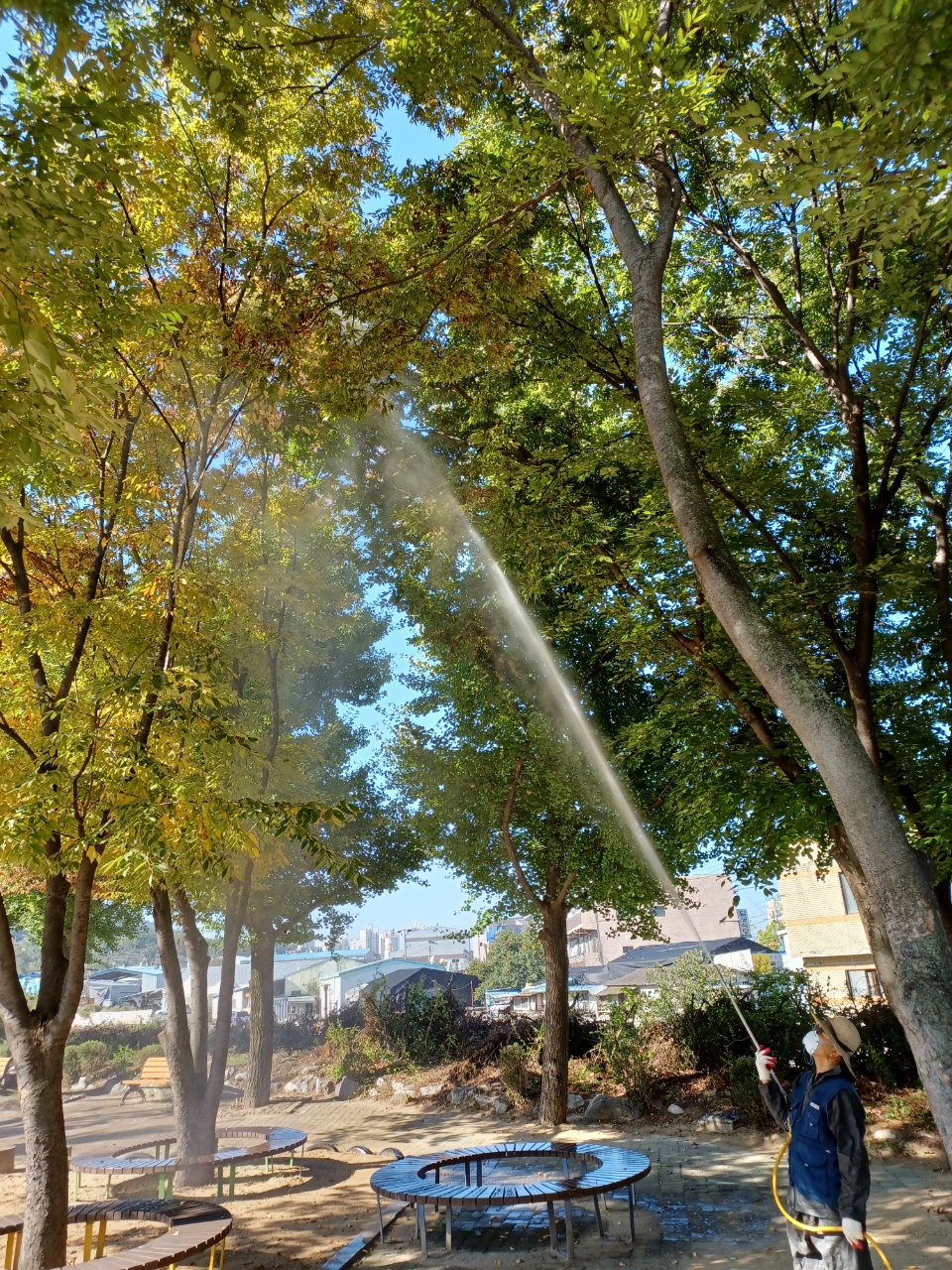 [학교 내 수목병충해 방제작업 및 엽면시비작업]