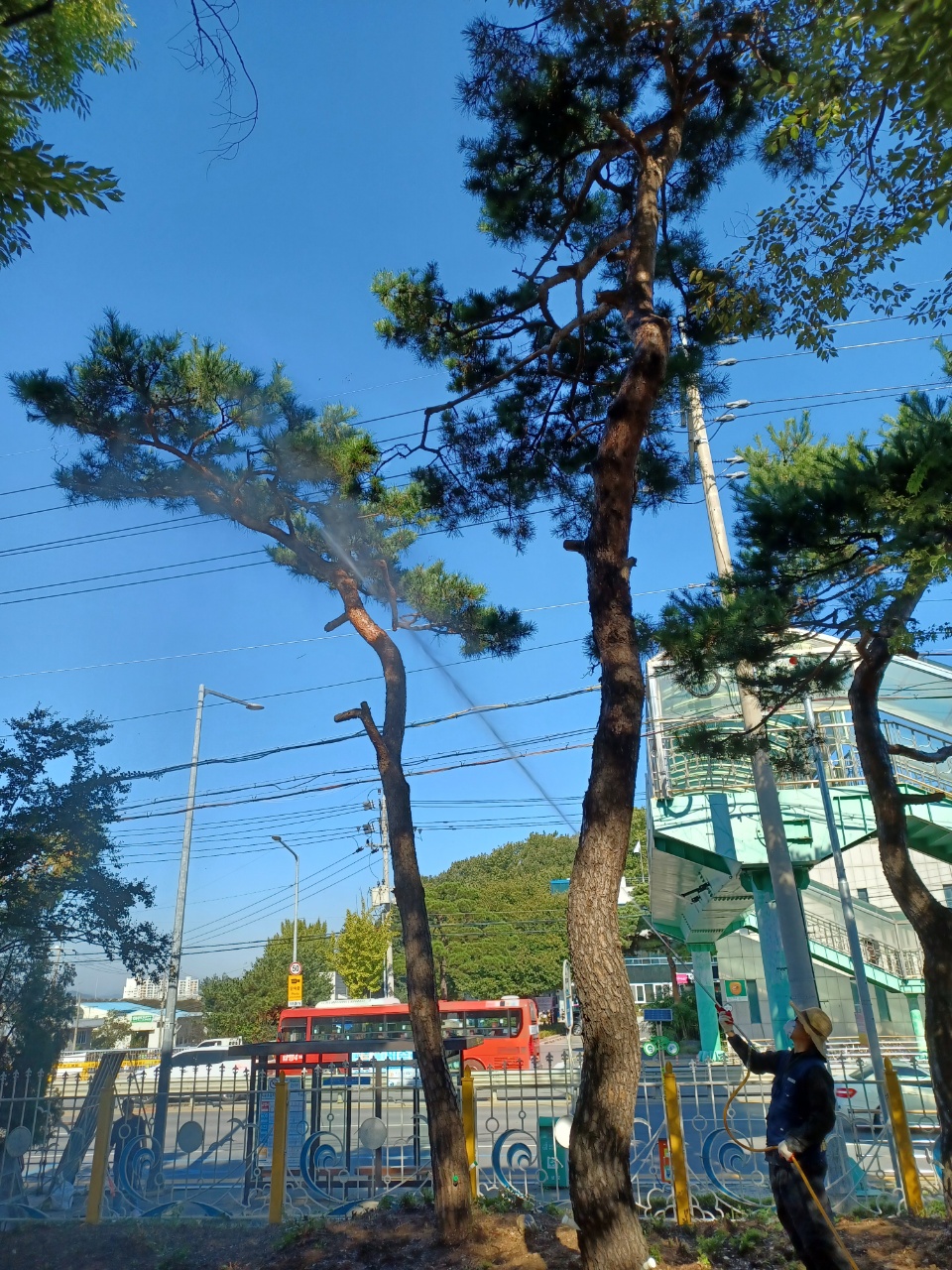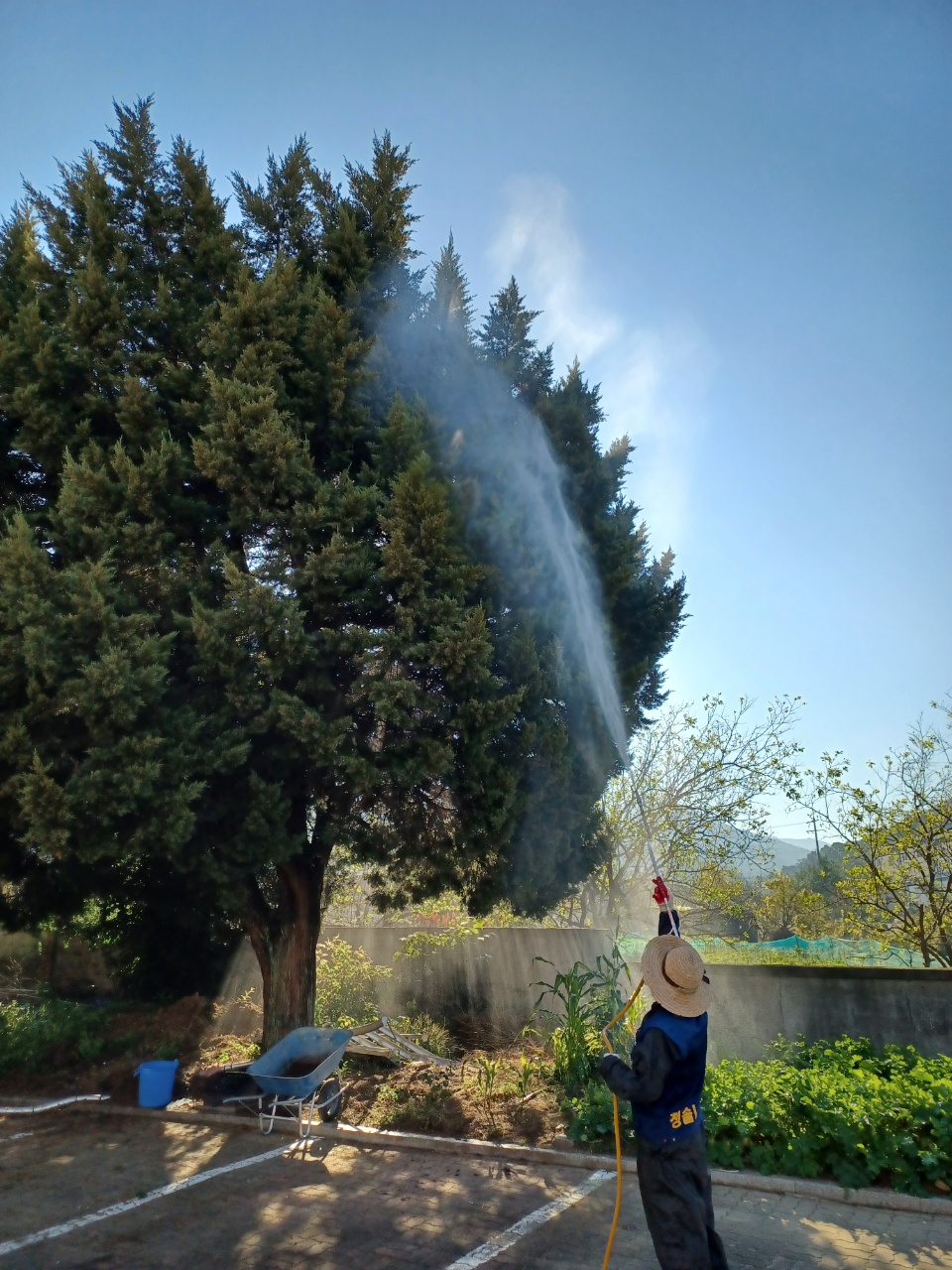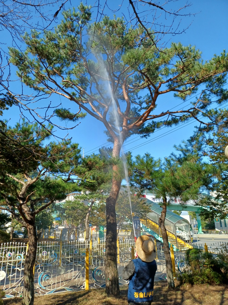 방제작업을 잘 마무리한 다음으로, 곧바로 학교 내 소나무에 투입할
