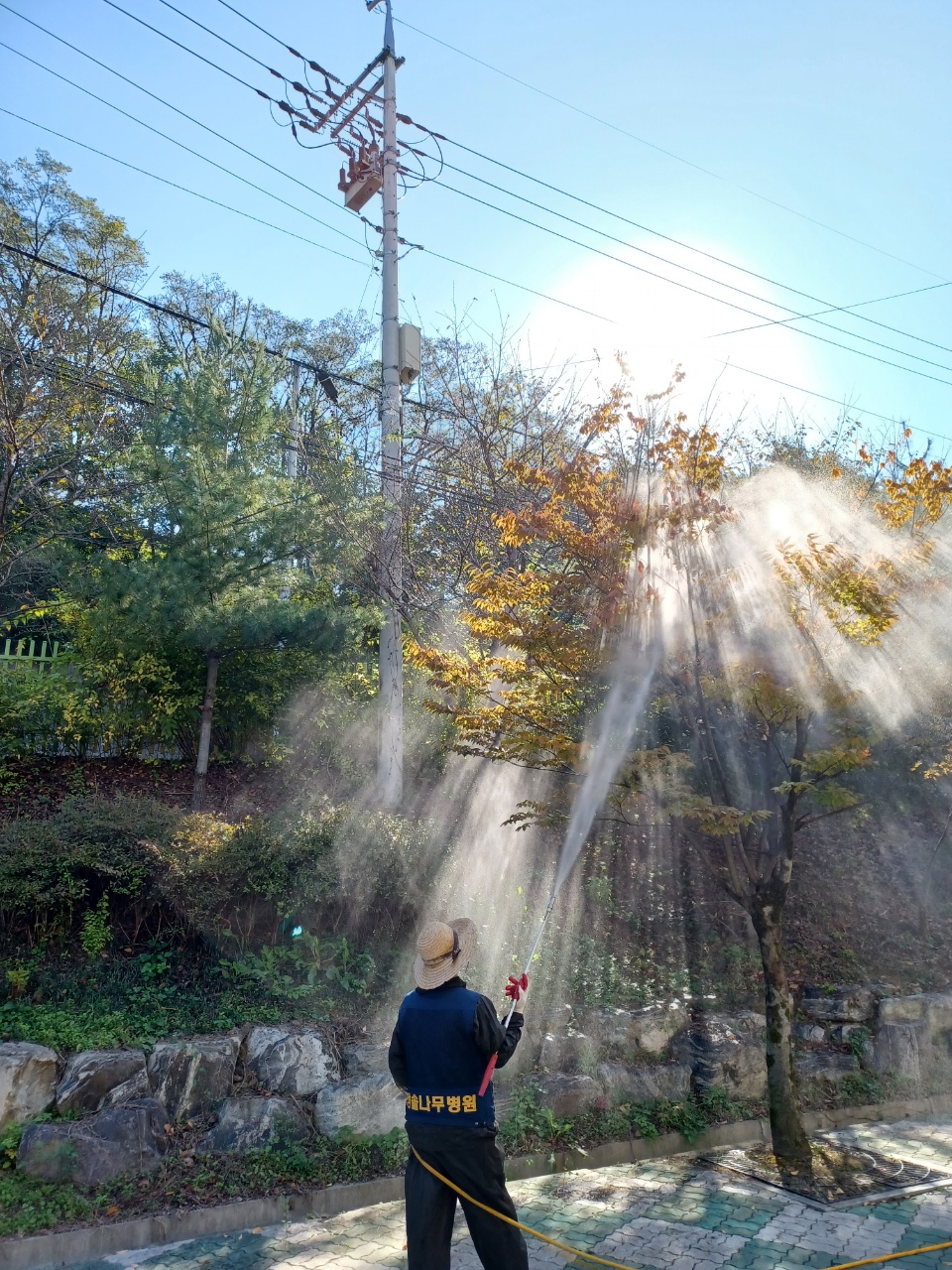 주말 아침 일찍부터 방제작업을 진행하였습니다.