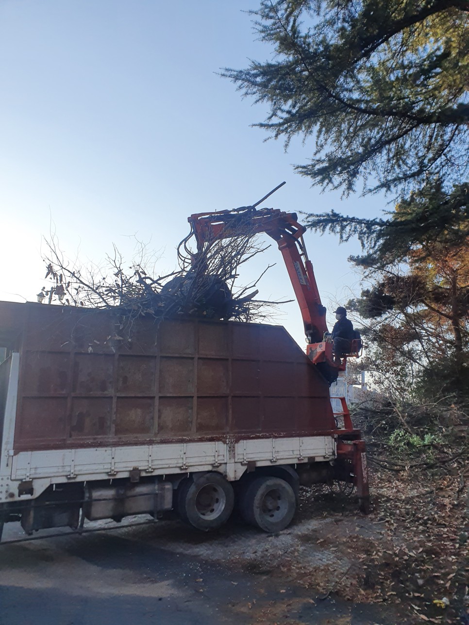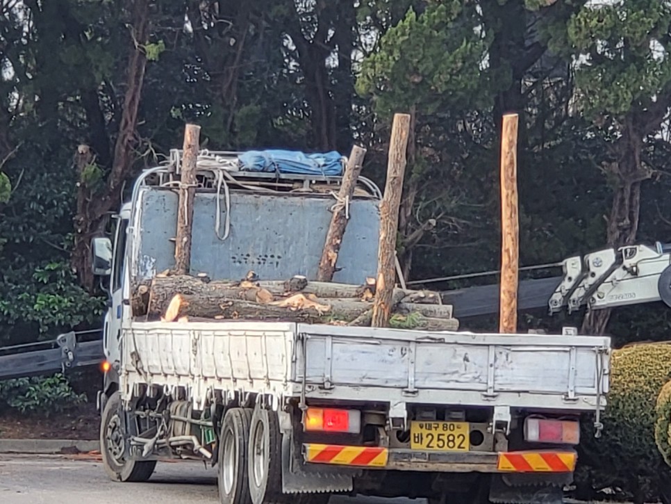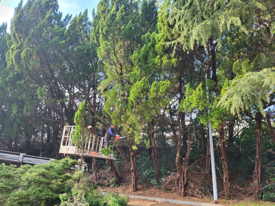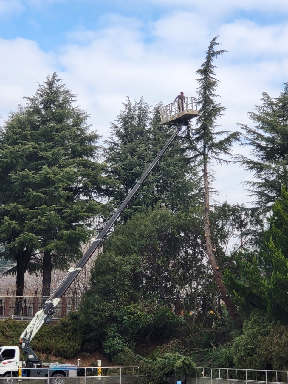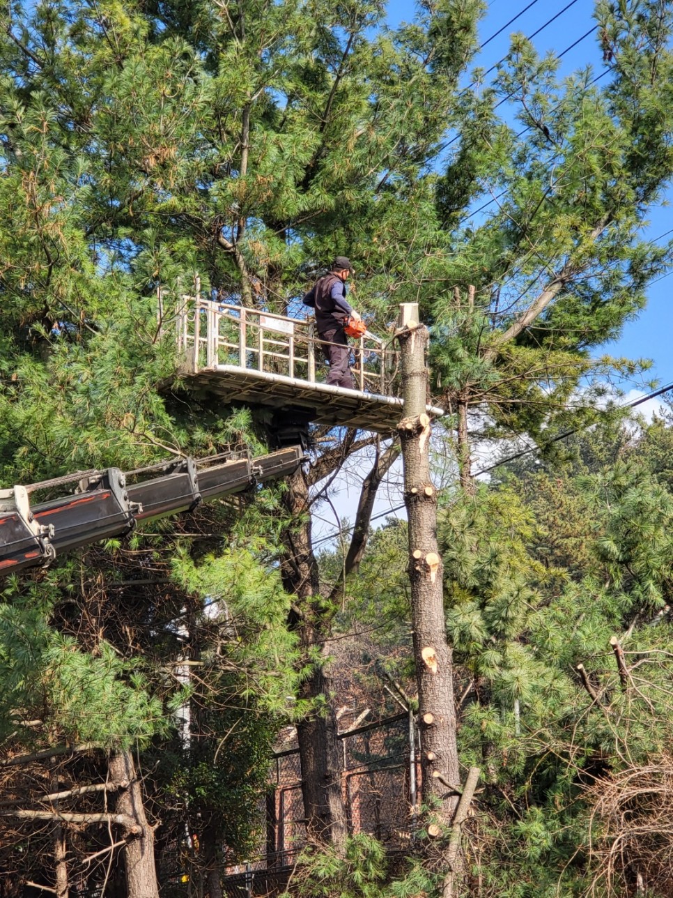 경급과 수고가 크고 높은 나무들이었기에 - 고가차량을 이용하여