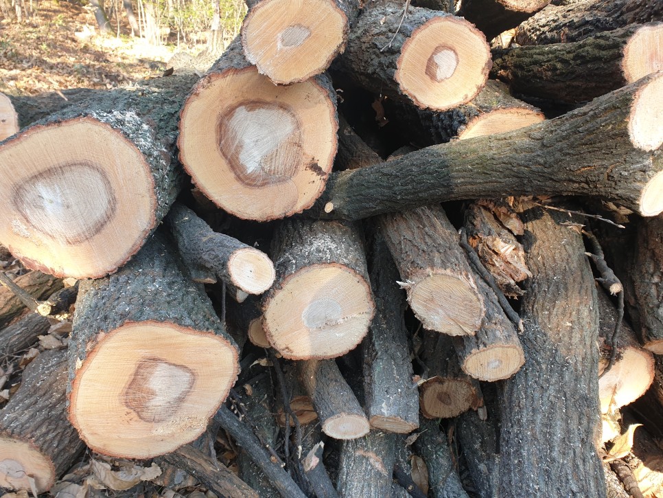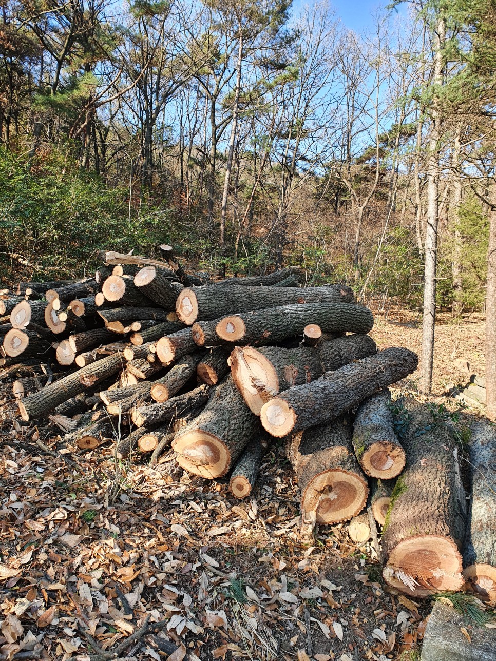 이날 참나무들을 많이 베어냈는데, 참나무 장작이 필요하신 분들이