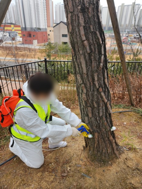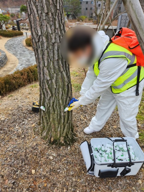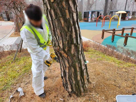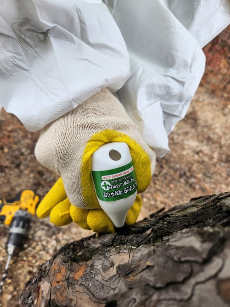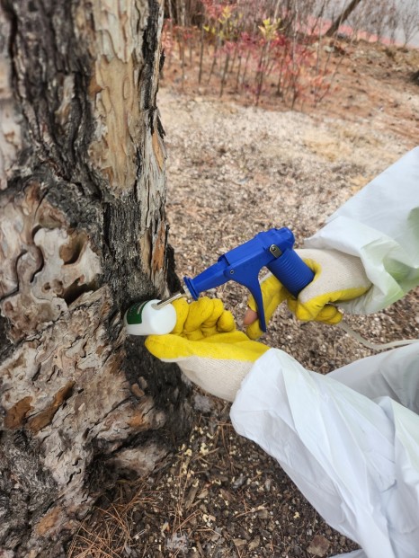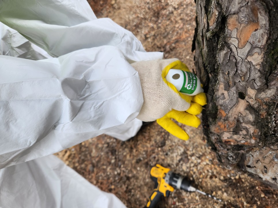 [소나무재선충병 예방을 위한 수간주사 투입작업]