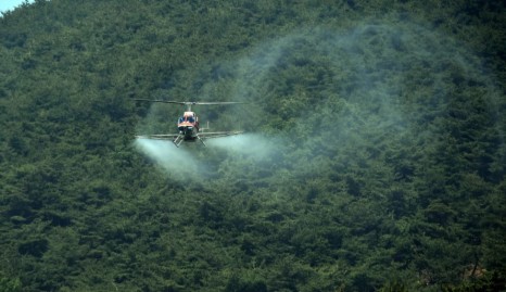매개충 방제의 경우 - 야산에 발생하는 매개충을 대상으로 드론이나 헬기를 이용한