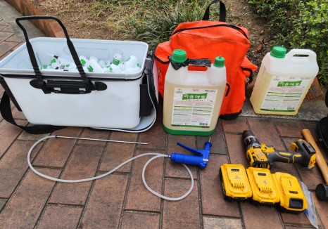 약제를 다량 투입할 수 있는 주입식 공병을 이용하여 작업을 진행하였습니다.