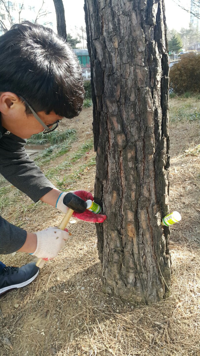 [응애 및 재선충 방지]를 위하여 수간주사 투입 작업을 실시 했습니다.