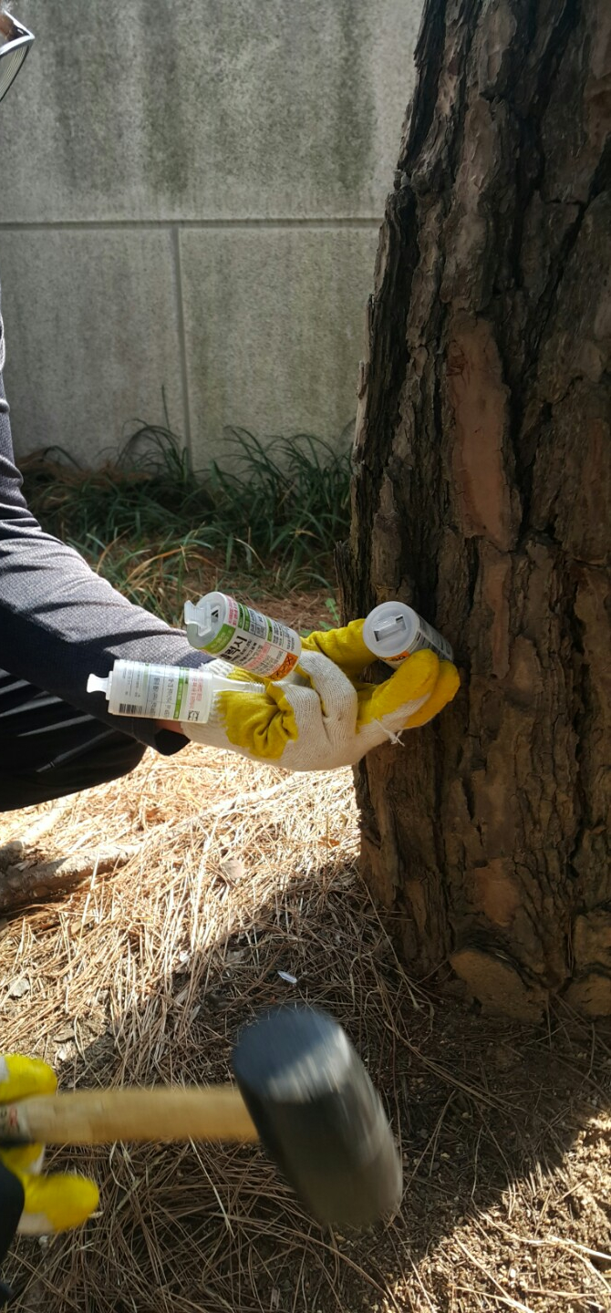 [응애 및 재선충 방지]를 위하여 수간주사 투입 작업을 실시 했습니다.
