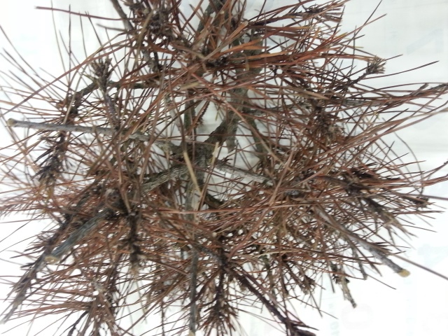 (응애 피해목 사진 - 소나무의 갈변 및 고사가 빠르게 진행)