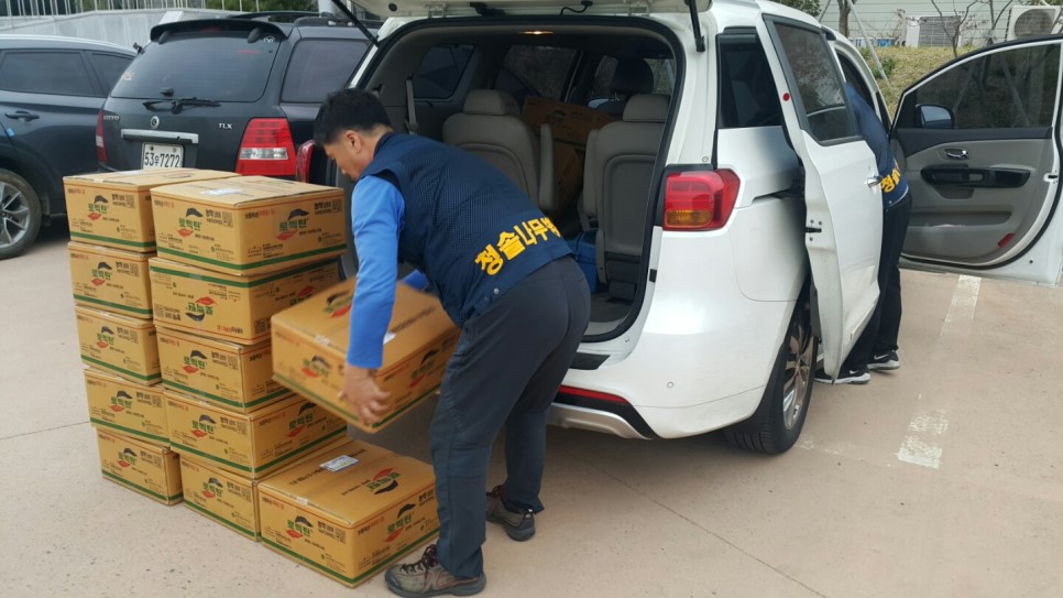 작업현장으로 운송하여 - 재차 이어지는 발주처의 정식 검수작업을 위해 수간주사제를 하역했습니다.