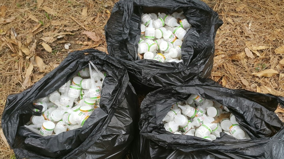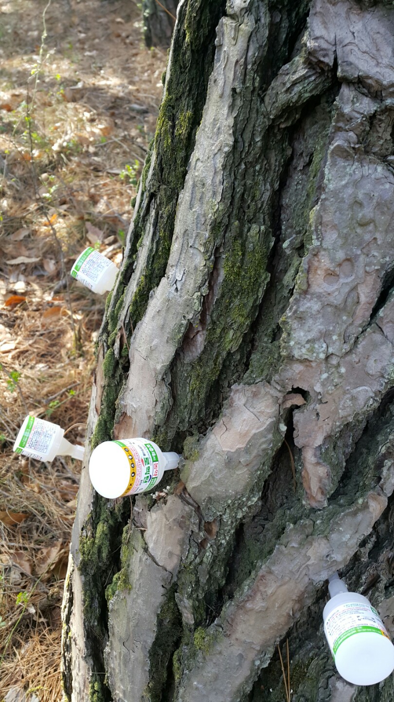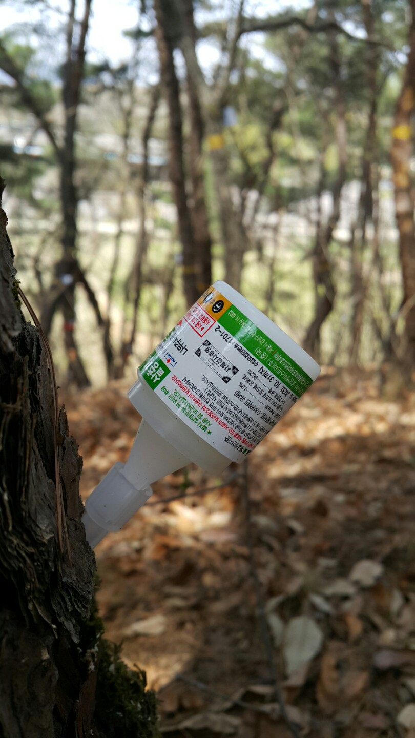 재차 투입이 완료된 수간주사제 용기를 회수하는 작업을 진행하였습니다.