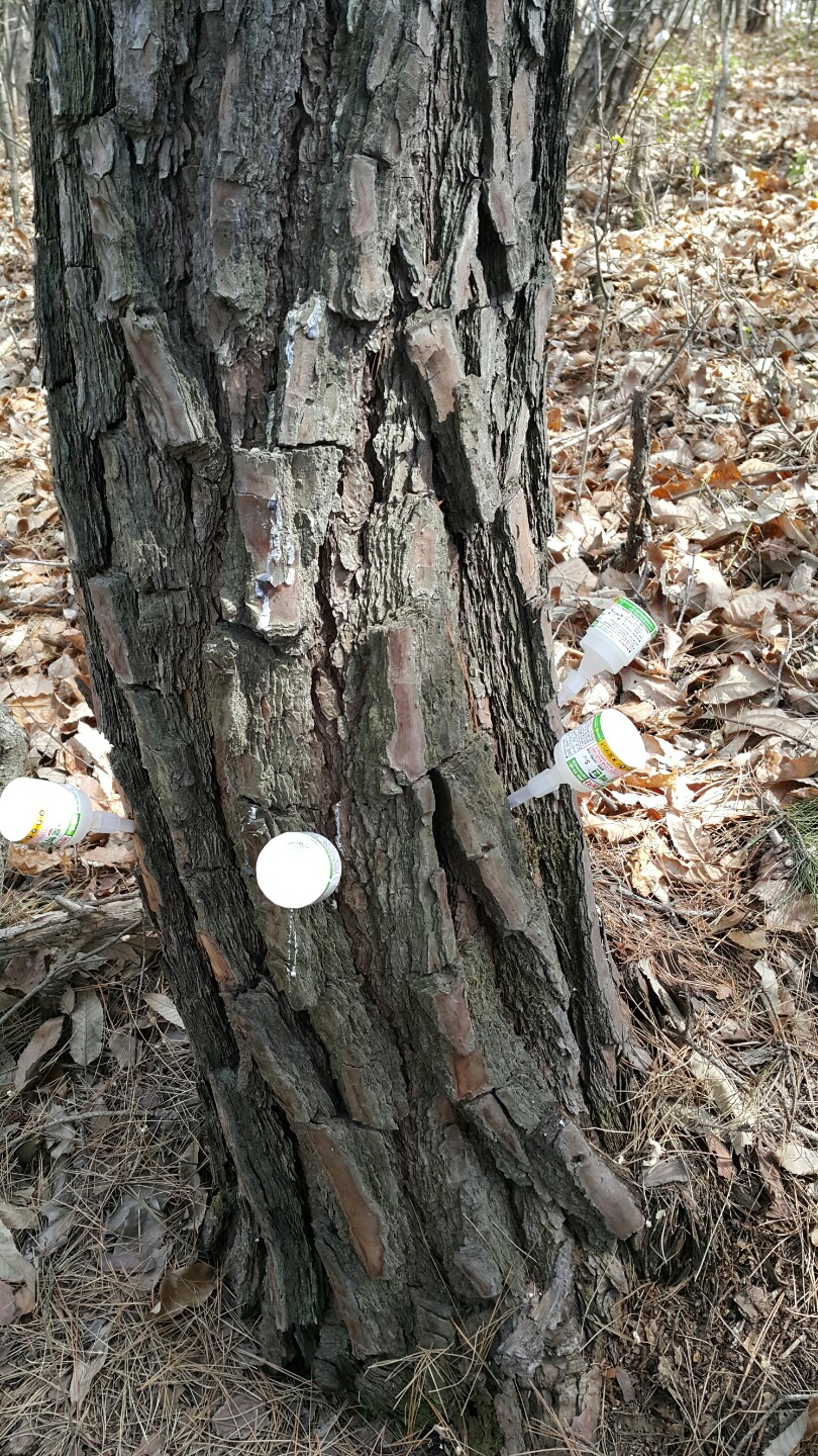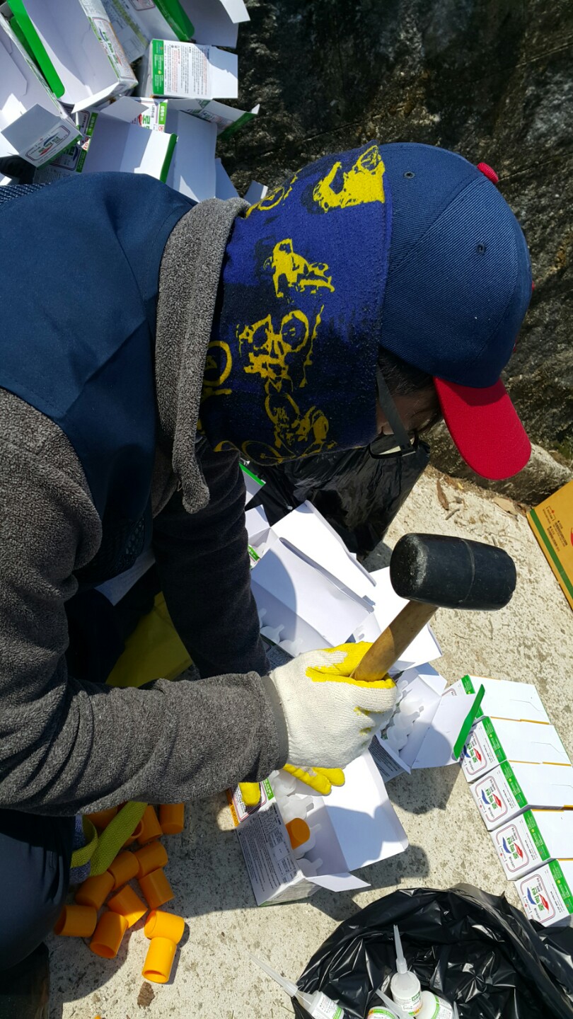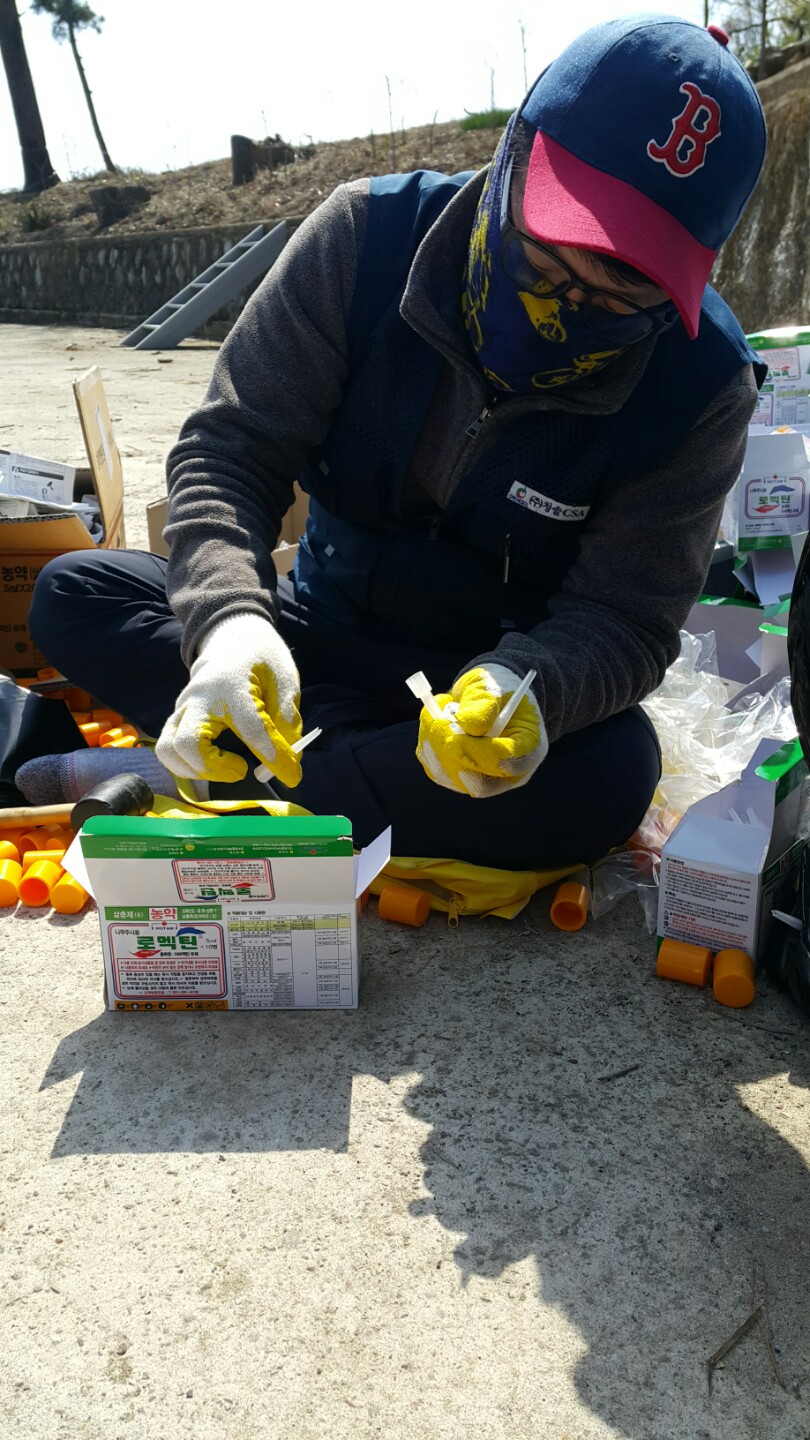 재차 투입이 완료된 수간주사제 용기를 회수하는 작업을 진행하였습니다.