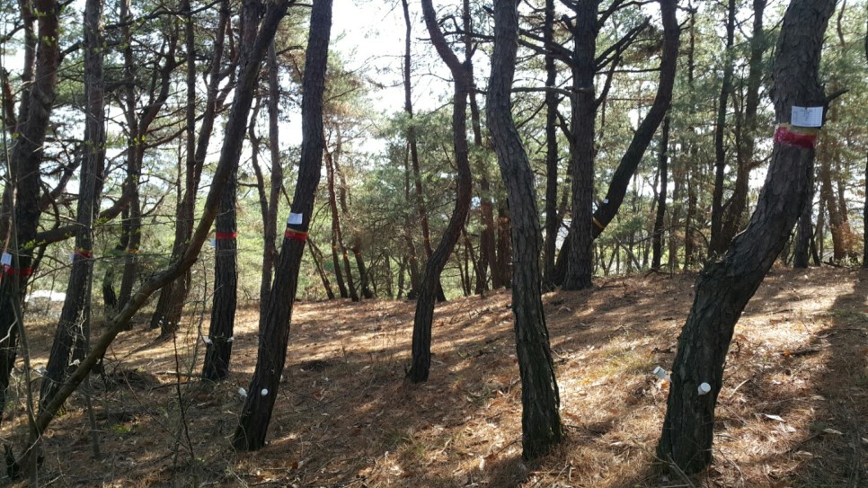 [ 작 업 내 역 ] : 소나무 1,200주 - 굴취 및 이식 전 재선충 예방을 위한 수간주사제 투입작업