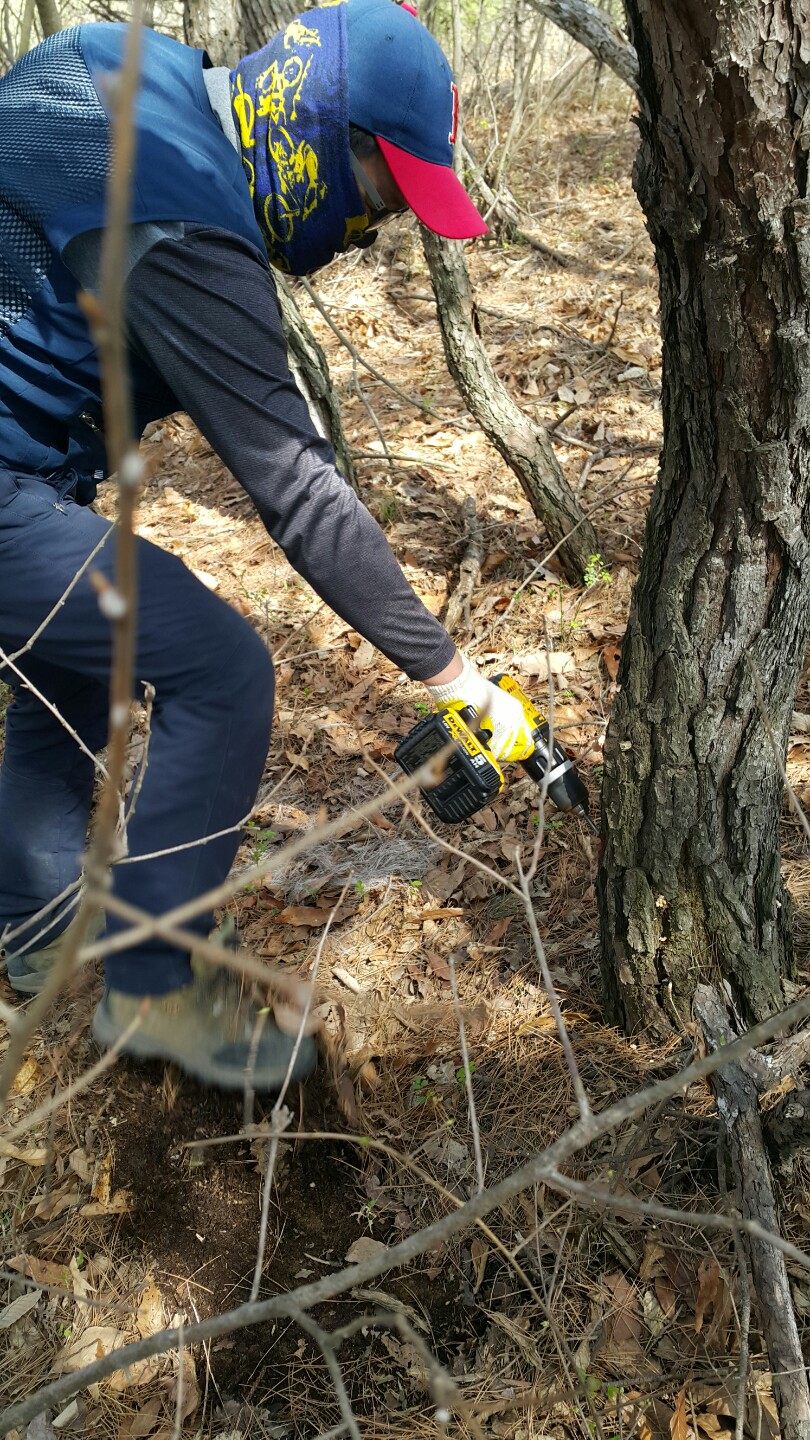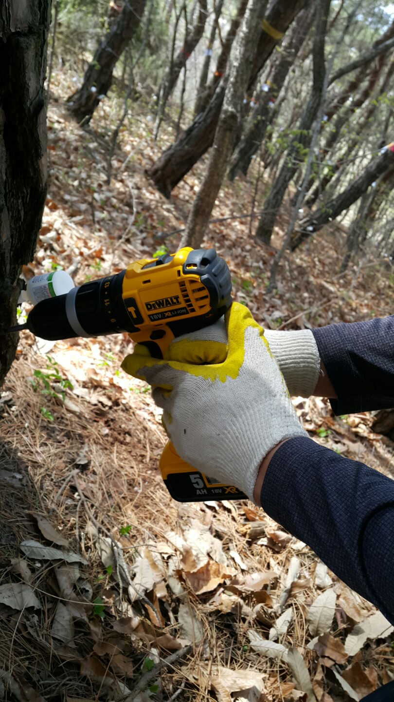 [소나무 굴취 및 이식 전 재선충 예방작업]을 위하여 수간주사 투입 작업을 실시 했습니다.