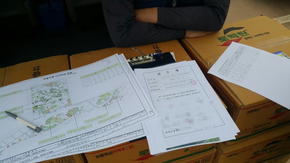 발주처에 보고하고 - 방제작업 일정 1일차를 무사히 마쳤습니다!