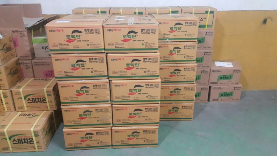 (수간주사제 하역 후, 발주처의 정식 검수작업을 진행했습니다.)