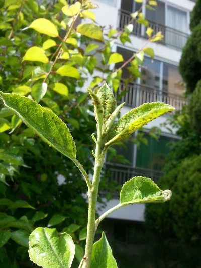 (조경수 진딧물 피해사진 - 어린 새순을 가해하여 흡즙 후 갈변시킵니다.)